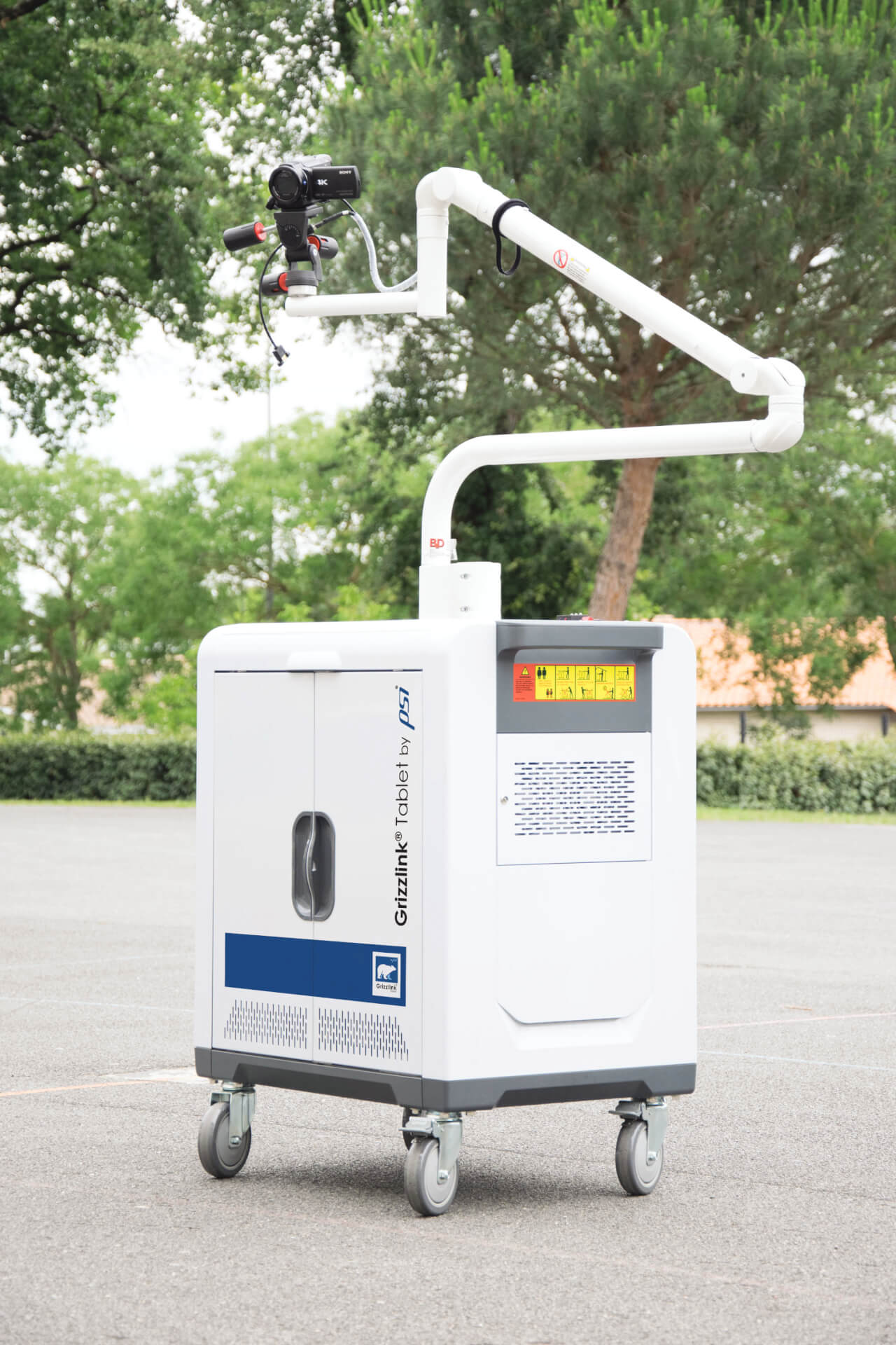Le chariot vidéo autonome est né de cette réflexion. Il s’agit d’un chariot Grizzlink, de fabrication PSI, équipé d’une caméra vidéo monté sur un bras articulé, permettant de faire l’acquisition de séquences pédagogique sous différents angles. Le chariot est également équipé d’un dispositif Wifi permettant la diffusion sur des écrans d’affichages. Le chariot est équipé de  batteries qui le rendent autonome.